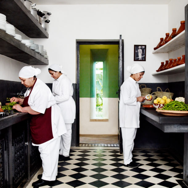 L’Hôtel Marrakech bietet beste traditionell-marokkanische Küche aus frischen, saisonalen und regionalen Zutaten. Die von unserem Chefkoch Bouchra zubereiteten Gerichte fangen die feinen Aromen und farbenfrohen Reize Marrakeschs ein. Genießen Sie hier eine bunte Auswahl an Salaten, frischem Gemüse, langsam gekochten Tajinen sowie gegrilltem Fleisch und Fisch sowie das perfekte Steak mit Pommes frites. Abgerundet werden die Gerichte von köstlichen hausgemachten Sorbets, Eiscremes und frischem Obst sowie traditionellen marokkanischen Desserts.