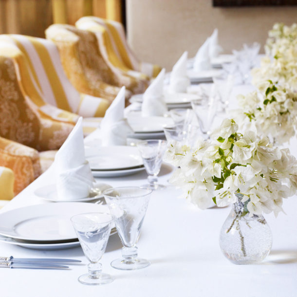 L’Hôtel Marrakech bietet ein warmes und einladendes Ambiente für Partys, Familienfeste und Hochzeiten im kleinen Kreis. Wir können 10 bis 16 Gäste bewirten, entweder auf der Dachterrasse unter der Weinlaube oder im Speisesaal, der hinaus zum üppigen Hofgarten führt.