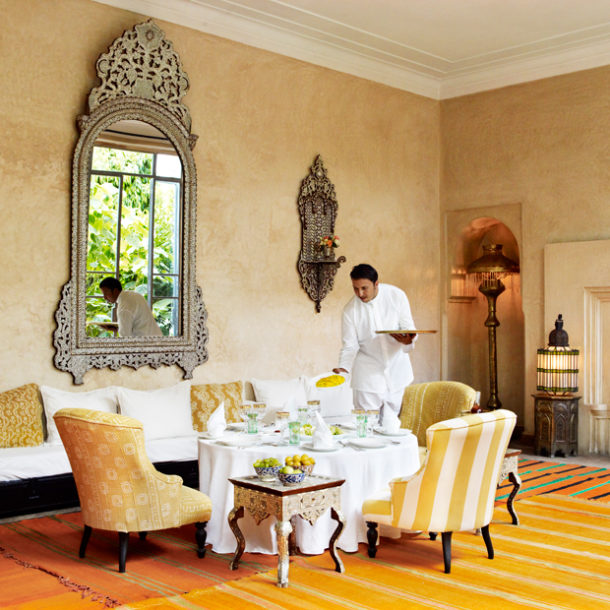 L’Hôtel Marrakech ist stolz auf seinen Ansatz, köstliche traditionell-marokkanische Küche zu servieren. Speisen Sie auf Ihrem privaten Balkon, im Speisesaal oder auf der Dachterrasse. Frische saisonal-regionale Waren werden täglich geliefert. Die frisch zubereiteten Kreationen fangen die feinen Aromen und farbenfrohen Reize Marrakeschs ein. Genießen Sie hier eine bunte Auswahl an Salaten, frischem Gemüse, langsam gekochten Tajinen sowie gegrilltem Fleisch und Fisch sowie das perfekte Steak mit Pommes frites. Abgerundet wird das Genusserlebnis von köstlichen hausgemachten Sorbets, Eiscremes und frischem Obst.